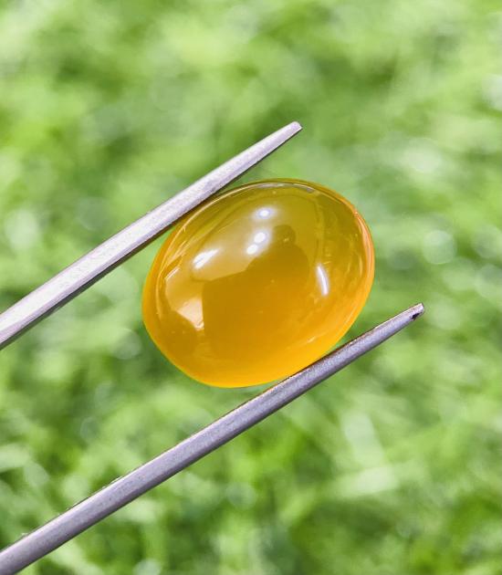 พลอยโมราอาเกตสีเหลือง หลังเบี้ย 12.25 กะรัต |