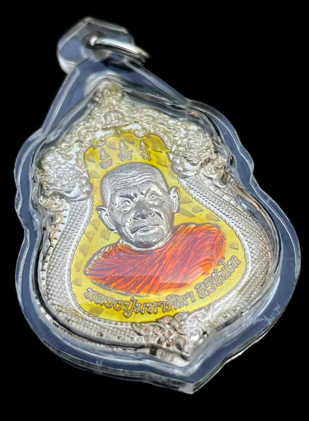 วัดใจ เหรียญ มหาสมปรารถนา รุ่น 1 หลวงปู่ศิลา สิริจันโท วัดโพธิ์ศรีสะอาด จ.กาฬสินธุ์ เนื้ออัลปาก้าลงยาสีเหลือง เลี่ยมพลาสติก สวยงาม |