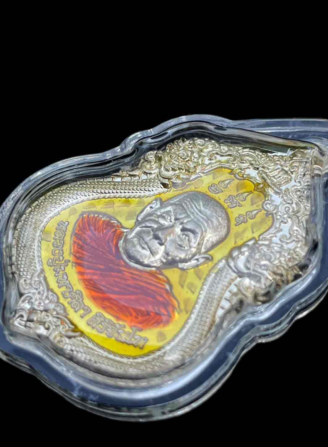 ด้านหน้าพุทธศิลป์สวยงาม รูปเหมือนหลวงปู่ศิลา ดุจดั่งมีชีวิต หลังปิดตามหาอุตม์ปืนไขว้