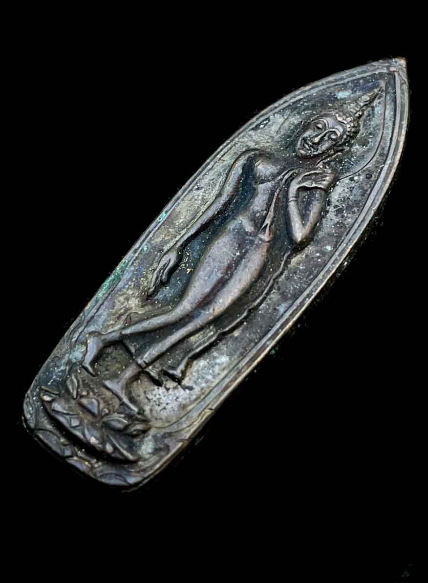 พระลีลา หลังนางพญา เนื้อทองแดงรมดำ วัดนางพญา จ.พิษณุโลก ปี 2514 สวยเดิมๆ
