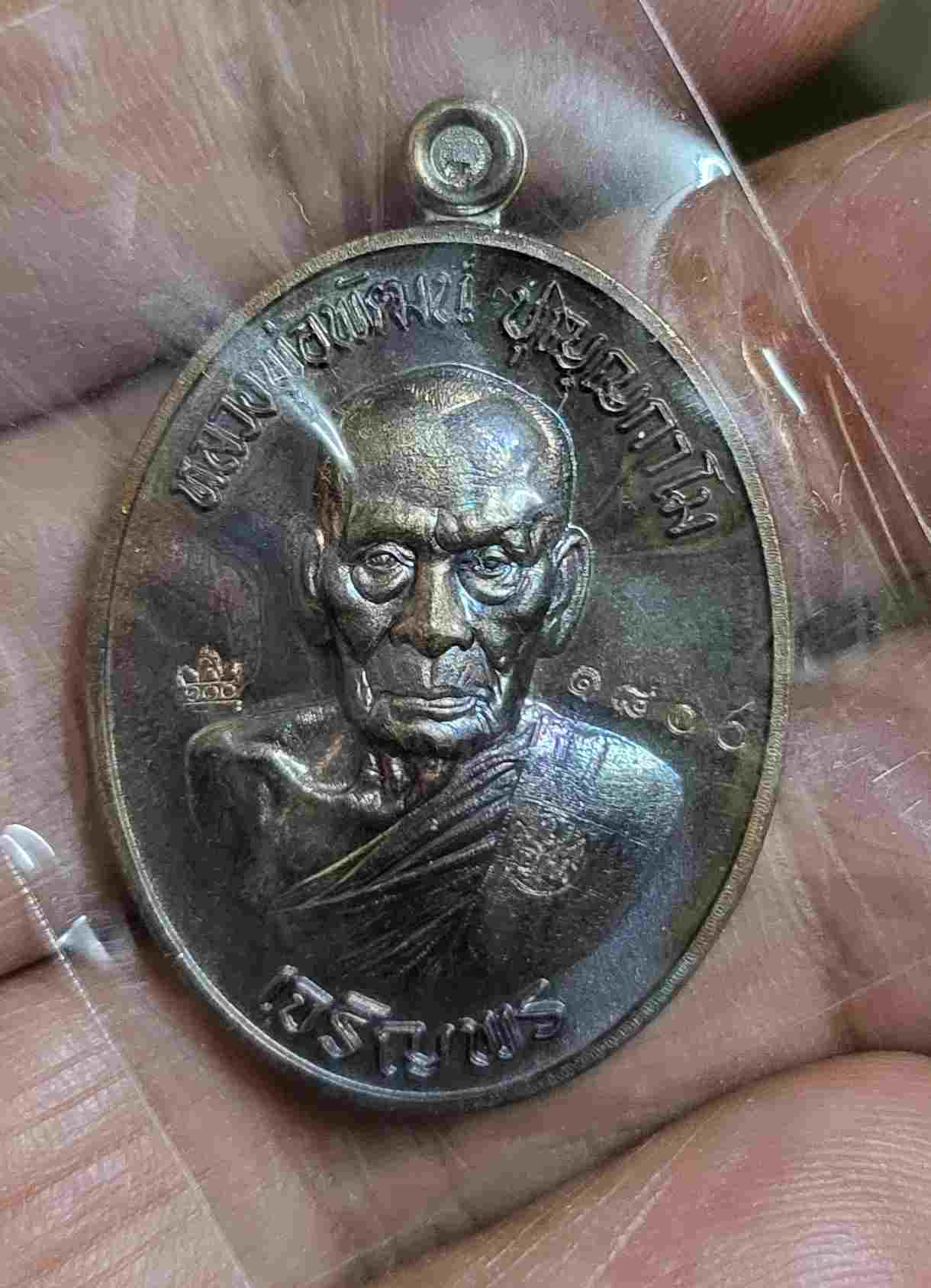 เคาะเดียวแดง เหรียญหลวงพ่อพัฒน์ รุ่นเจริญพรล่าง พิมพ์ขอบเรียบ เนื้อนวะโลหะ หมายเลข 1800 |