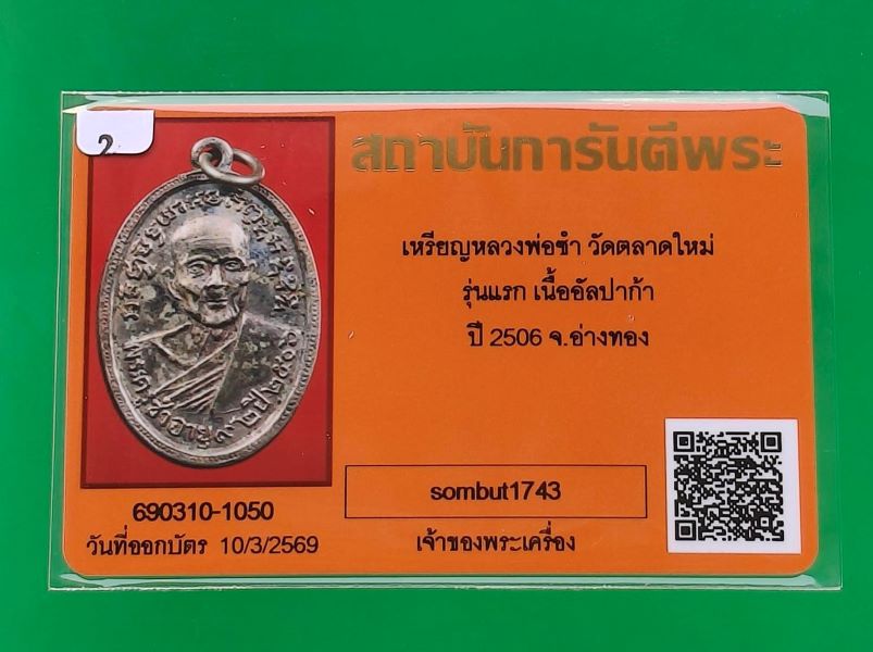 เหรียญหลวงพ่อซำ วัดตลาดใหม่ ปี 2506 รุ่นแรกพิมพ์นิยม พร้อมบัตรรับรองครับ
