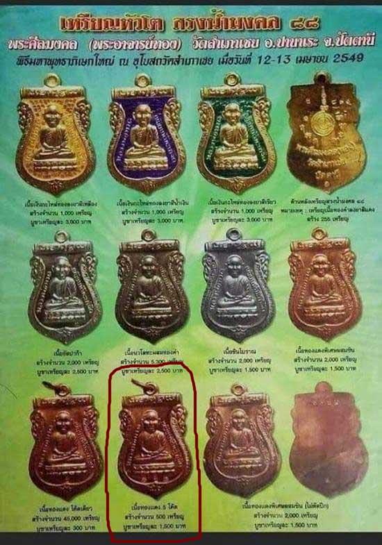 เหรียญหัวโต อ.ทอง รุ่นสรงน้ำมงคล 88 เนื้อทองแดง 5 โค๊ด ปี 49 |