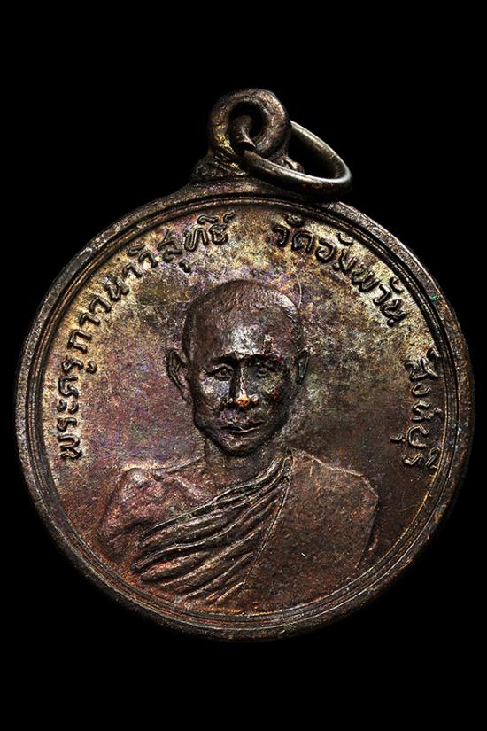เมื่อปลายปี พ.ศ. ๒๕๑๒ คุณครูไกล(ครูโรงเรียนสิงห์บุรี) , คุณถนอม ศิริกุล(ร้านศิริกุลสังฆภัณฑ์) , ร้านบุญเจริญสังฆภัณฑ์ และคณะศิษยานุศิษย์จังหวัดสิงห์บุรี ร่วมกันจัดสร้างถวายหลวงพ่อจรัญ เนือ่งในโอกาสที่วัดอัมพวัน จังหวัดสิงห์บุรี ได้รับยกย่องให้เป็นวัดพัฒนาตัวอย่าง ในปี พ.ศ. ๒๕๑๒ จากกรมศาสนา และกระทรวงศึกษาธิการ ต่อมาพระเดชพระคุณหลวงพ่อจรัญ ท่านได้รับพัดพัฒนาวัดดีเด่น จากสมเด็จญาณสังวรพระสังฆราช ในปี พ.ศ. ๒๕๑๓ ทางคณะจึงได้นำเหรียญที่สร้างเสร็จ ถวายพระเดชพระคุณหลวงพ่อจรัญในปีนั้น