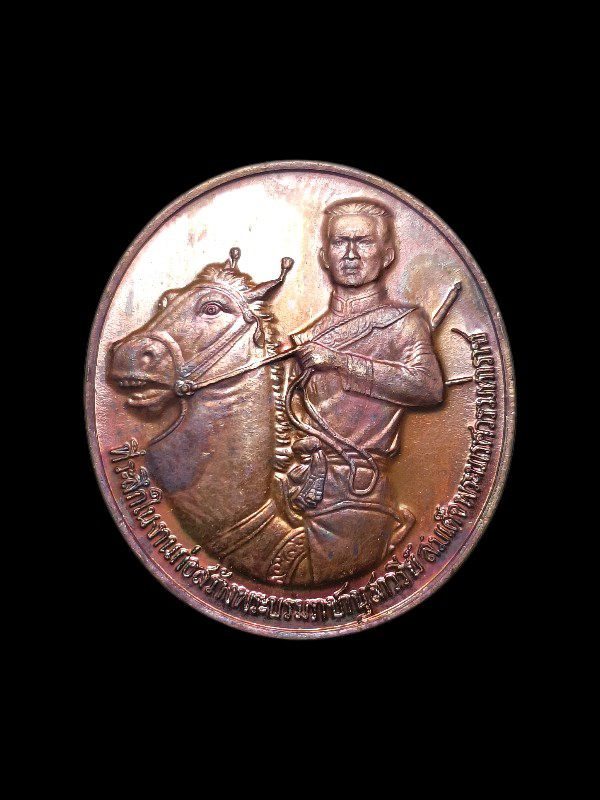 เหรียญสมเด็จพระนเรศวรมหาราช หลังสมเด็จพระพี่นางสุพรรณกัลยานี และสมเด็จพระอนุชาพระเอกาทศรถ ที่ระลึกในงานก่อสร้างพระบรมราชานุสาวรีย์ กองบัญชาการทหารสูงสุด จัดสร้างปี 2541 |