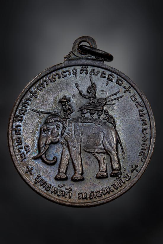 ((เคาะเดียวแดง))เหรียญพระนเรศวรมหาราช หลังยุทธหัตถี ปี2513 เนื้อทองแดง (บล็อคสามดาบก้อนเมฆ) สวยๆ |