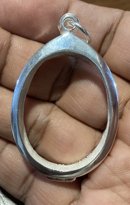 ตลับเงินปัดเงา ทรงรูปไข่ ขนาดขอบใน (กxสxหนา) (2.7 x 3.6 x0.6) Cm.หรือขนาดเหรียญใกล้เคียง |