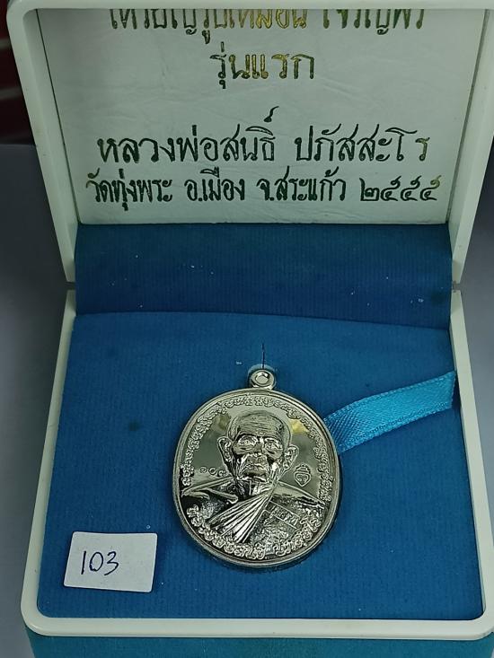 เหรียญรูปเหมือน "เจริญพร รุ่นแรก" หลวงพ่อสนธิ์ วัดทุ่งพระ ปี 55 เนื้อเงิน เบอร์ 103 พร้อมกล่องเดิมครับ (เหรียญหนัก 14.60 กรัม)
