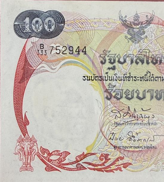 ธนบัตร 100 บาท รัชกาลที่ 9 แบบ 10 เรือสุพรรณหงส์ จำนวน 1 ใบ เลขสวย สภาพสวยตามรูป