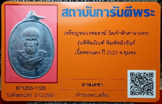 เหรียญหลวงพ่อสงฆ์ วัดเจ้าฟ้าศาลาลอย รุ่นพิพิธภัณฑ์ พิมพ์หลังยันต์ เนื้อทองแดง ปี2523 พระสวยผิวเดิมสภาพตามรูปเลยครับ มาพร้อมบัตรการันตีพระ