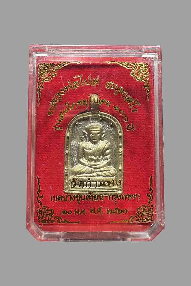 เหรียญจอบใหญ่ หลวงพ่อไปล่ วัดกำแพง บางขุนเทียน เนื้อทองเหลือง รุ่น 4 สมโภชอุโบสถ 100 ปี |