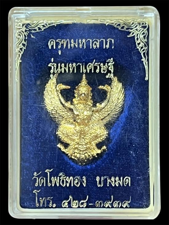 พญาครุฑ รุ่นอกแอ่นหลัง ว. มีบุญ มีวาสนา หลวงพ่อวราห์ วัดโพธิทอง เนื้อกะไหล่ทอง ปี 2541 สภาพสวยเดิม กล่องเดิม...