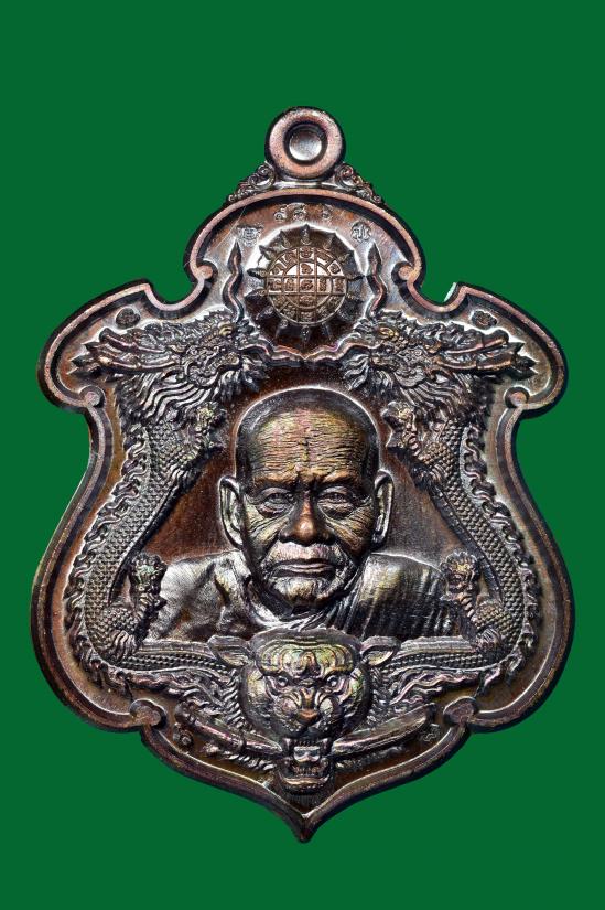 วัดใจ เหรียญพญาพยัคฆ์ เนื้อทองแดงรมมันปู หลวงปู่มี วัดโพนทอง จังหวัดสุรินทร์ เนื้อทองแดงรมมันปู หมายเลข ๕๘๖ (สร้าง 1,999 องค์)