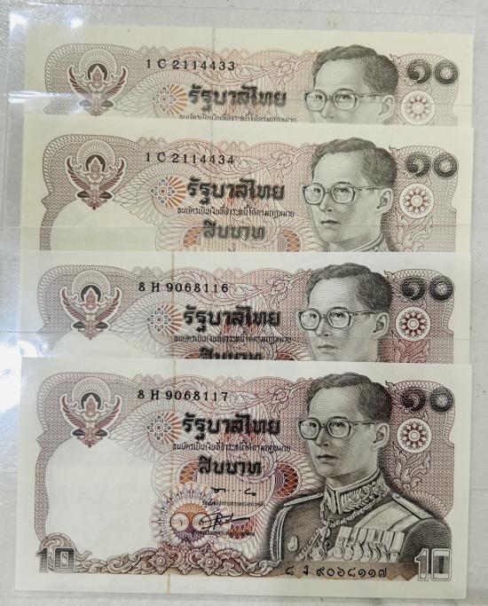 ธนบัตร 10 บาท หลังพระบรมรูปทรงม้า เรียง 2 ชุด รวม 4 ใบ