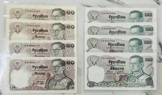 ชุด ธนบัตร 10 บาท และ 20 บาท อย่างละ 4 ใบ ไม่ผ่านการใช้งาน |