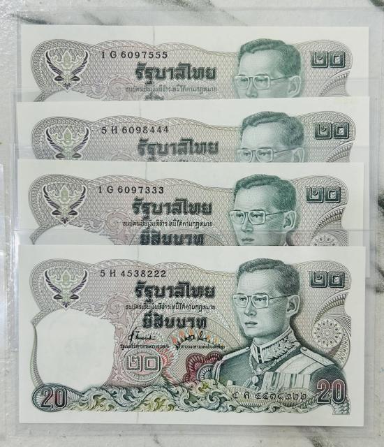 ธนบัตร 20 บาท หลังพระเจ้าตากสิน ท้ายตอง 222 333 444 555 รวม 4 ใบ