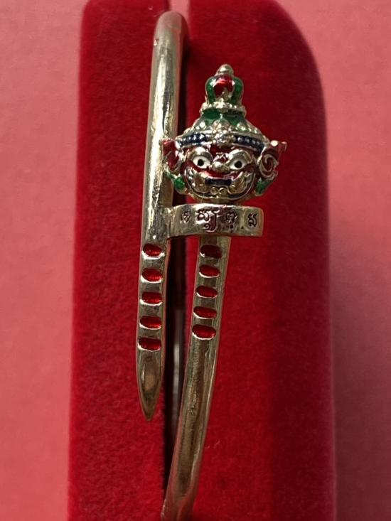 เคาะเดียวแดง หลวงปู่บุดดา กำไลท้าวเวส เนื้อ ทองขาวขัดเงาลงยาแดง |