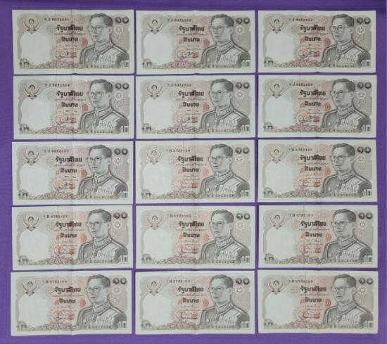 ธนบัตร 10 บาท แบบ 12 จำนวน 15 ฉบับ |