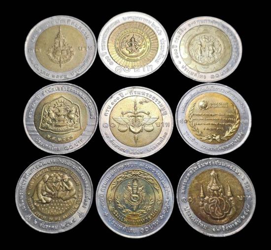 เหรียญ10บาท2สี เหรียญสะสมหลายวาระจำนวน9เหรียญ. ชุด1 |