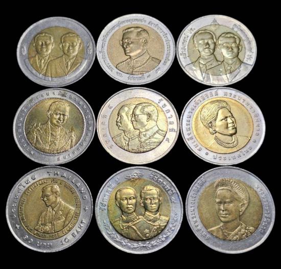 เหรียญ10บาท2สี เหรียญสะสมหลายวาระจำนวน9เหรียญ |