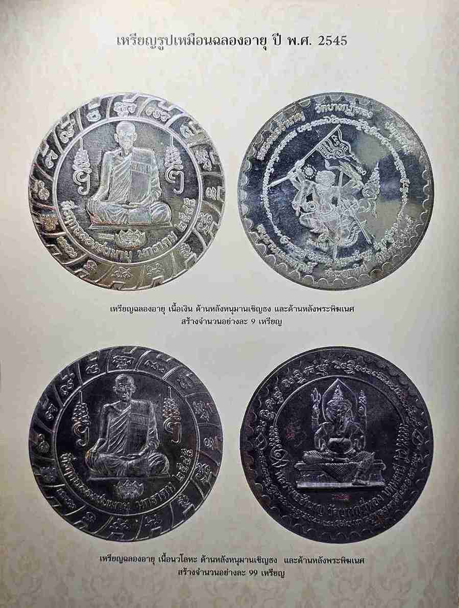 เหรียญฉลองชนอายุ หลวงพ่อชำนาญ วัดบางกุฎีทอง จ.ปทุมธานี หลังหนุมานเชิญธง ปี 45 เนื้อนวะ สร้าง 99 เหรียญ |