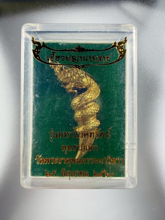 เขี้ยวพญานาคราช รุ่น มหาโภคทรัพย์ เนื้อบรอน พุทธาภิเษก วัดพระธาตุพนมวรมหาวิหาร 25 มิถุนายน 2560 พร้อมกล่องเดิมค่ะ