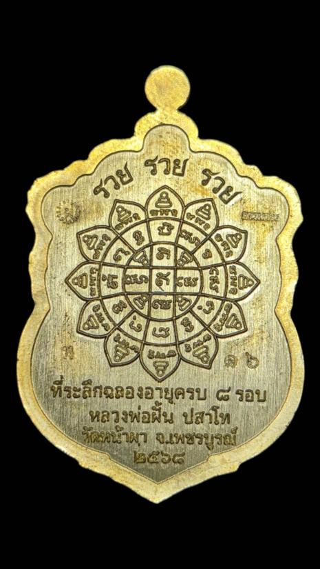 เหรียญเสมา8รอบรุ่นรวยรวยรวย หลวงปู่ฝั้น ปสาโท วัดหน้าผา (เนื้อทองทิพย์ลงยา) |