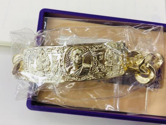 เลสข้อมือ หลวงพ่อช้าง วัดจุกเฌอ เนื้อชุบทอง หมายเลข 681 พร้อมกล่อง |