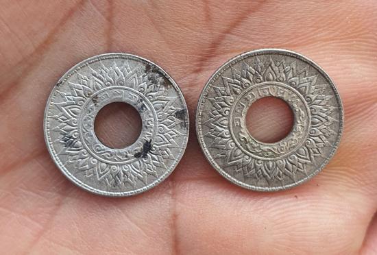 วัดใจเหรียญสตางค์รูแข้งสิงห์เนื้อเงิน 10 สตางค์จำนวน 2 เหรียญ |