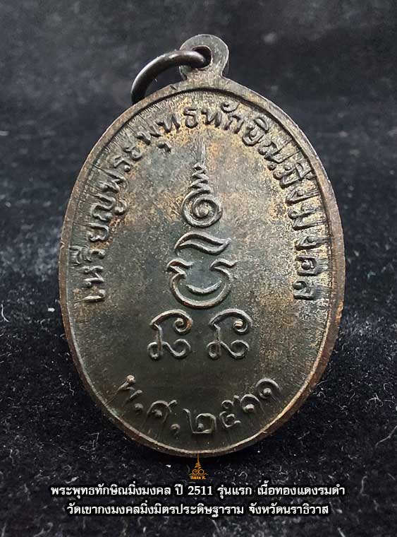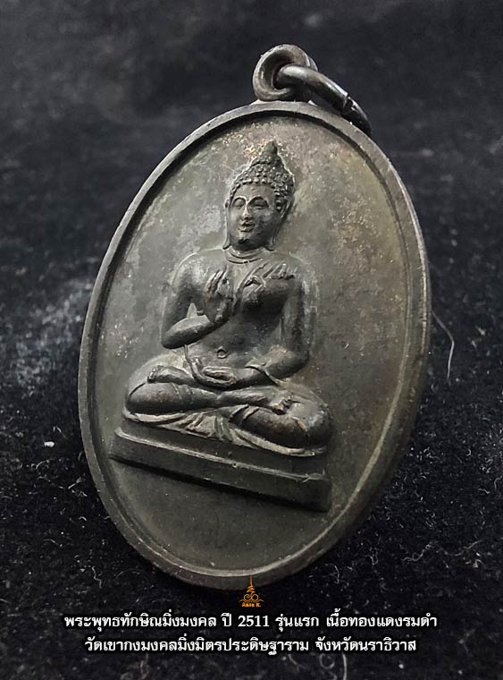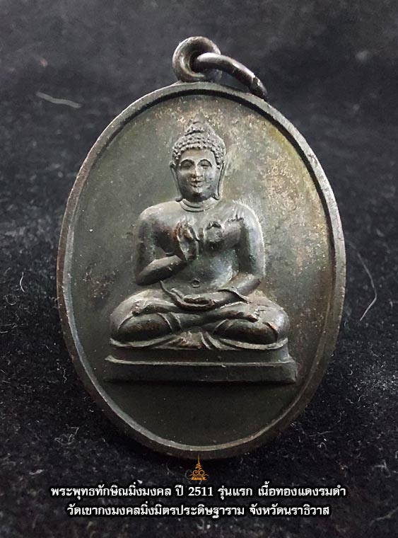 เหรียญพระพุทธทักษิณมิ่งมงคล วัดเขากง จ.นราธิวาส ปีพ.ศ. 2511 เนื้อทองแดงรมดำ สวยเดิม