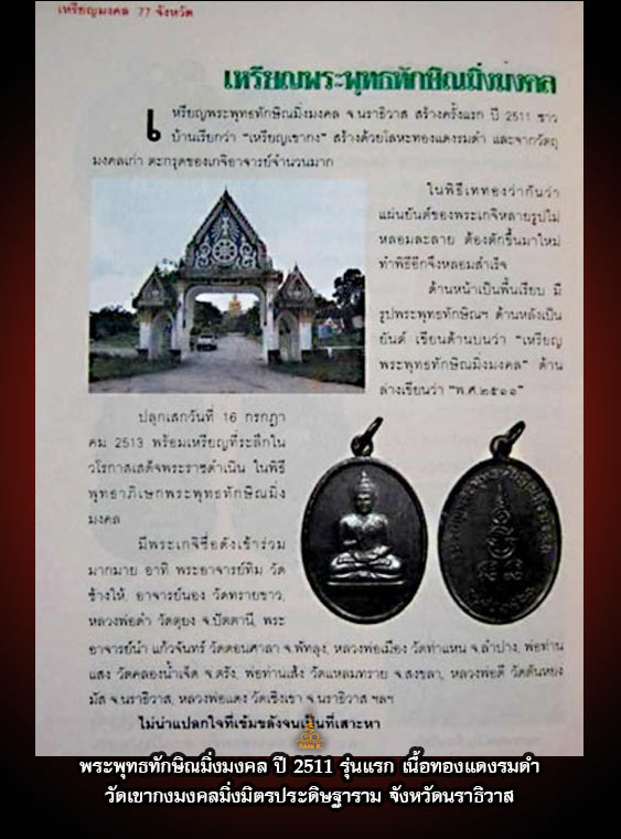 เหรียญพระพุทธทักษิณมิ่งมงคล รุ่นแรก วัดเขากง จ.นราธิวาส ปีพ.ศ. 2511 เนื้อทองแดงรมดำ สวยเดิม |