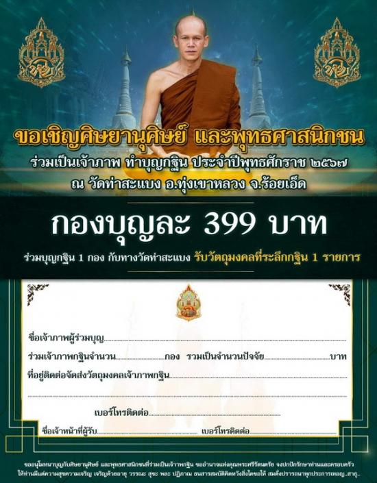 3-12 วัดใจ 100 เหรียญหล่อโบราณดวงดี ที่ระฤกกฐิน พระอาจารย์ต้อม วัดท่าสะเเบง จ.ร้อยเอ็ด 2567 พิมพ์รัดประคด เนื้อชนวนมวลสาร ห่วงเชื่อม ตัดช่อ ตอกโค้ด กล่องเดิม***ทำเนียบจัดสร้างชัดเจน |