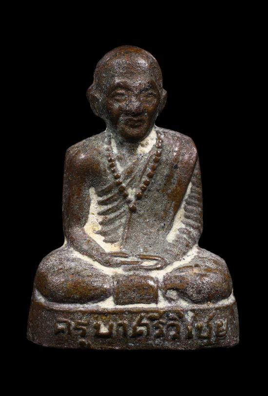 พระรูปเหมือนปั้มครูบาศรีวิชัย วัดพระธาตุดอยสุเทพ จังหวัดเชียงใหม่ จัดสร้างเมื่อปีพ.ศ. 2515 พิมพ์หน้าหนุ่ม เนื้อโลหะผสม ผิวหิ้งเดิม ๆ