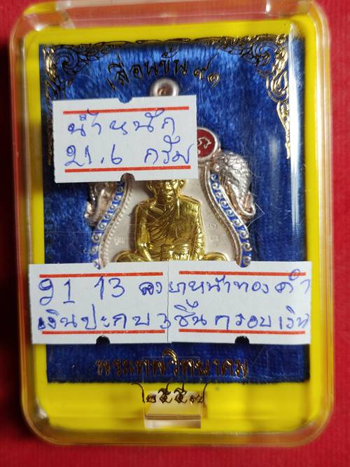 เหรียญเสมาเลื่อนขั้น 91 หลวงพ่อคูณ ปริสุทโธ ออกวัดบ้านไร่ ปี 2557 เนื้อ เงินปะกบ 3 ชิ้น หรอบเงินลงยาหน้าทองคำ หมายเลข 13 สภาพสวย เคาะเดียวแดง |