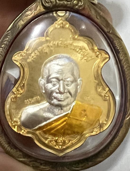 วัดใจ@200@หลวงพ่อทองสุข วัดหนองฆ้อ ฉลองเลื่อนสมณศักดิ์ เนื้อสัตตะโลหะหน้ากากเงินลงยาจีวรกรรมการ เลข 91 เลี่ยมกันน้ำทองไมคอน |