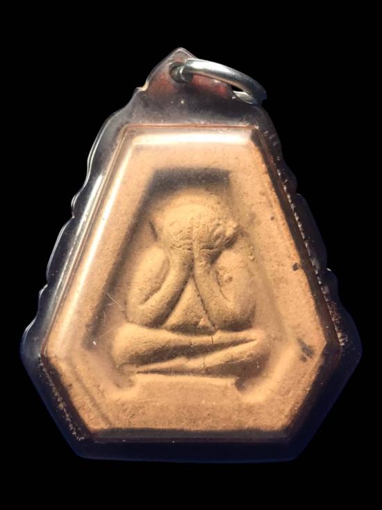 พระปิดตาหกเหลี่ยม หลังสังกัจจายน์ เนื้อผงพุทธคุณ หลวงปู่เฮี้ยง วัดป่าฯ พร้อมเลี่ยมกรอบกันน้ำ