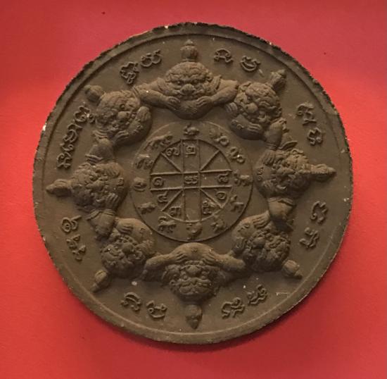 ...ด้านหลังเป็น ดวงตราพญาราหู รายล้อมด้วย ๑๒ นักษัตร อันเป็นดวงตราศักดิ์สิทธิ์ของชาวศรีวิชัยทะเลใต้ ประทับลัคนา "มหาจักร" อันเป็นลัคนาที่จะส่งผลให้ผู้ที่ถือครองบูชาพบกับความเจริญรุ่งเรืองตลอดไป