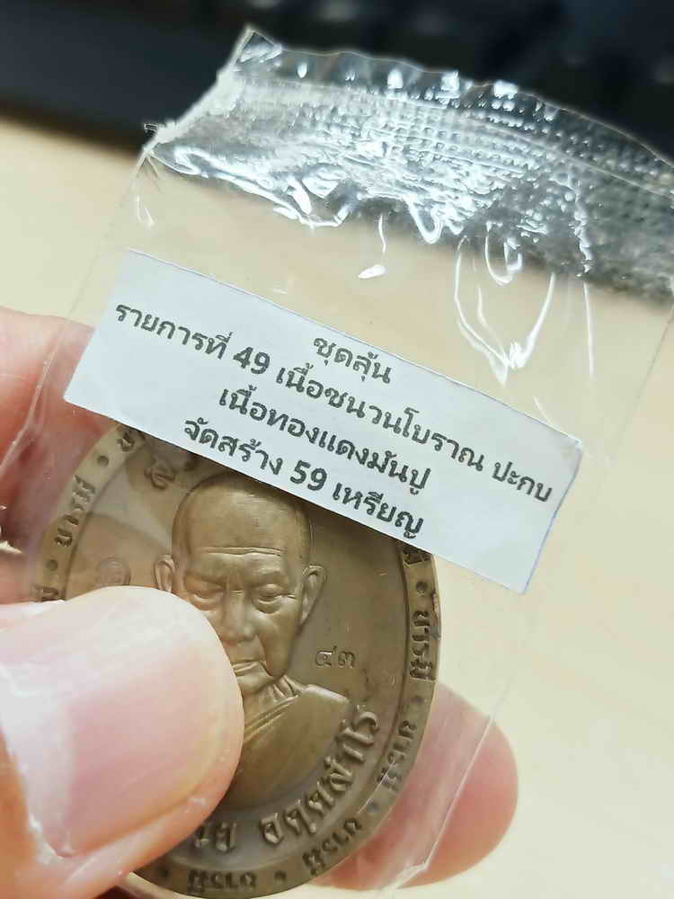 วัดใจ 100 เหรียญสร้างบารมี หลวงพ่อรวย อคคฺสาโร วัดมาบตาพุด ระยอง ปี 2566 ชนวนโบราณ ประกบทองแดงมันปู อย่างหนา หมายเลข 43 กล่องเดิม |