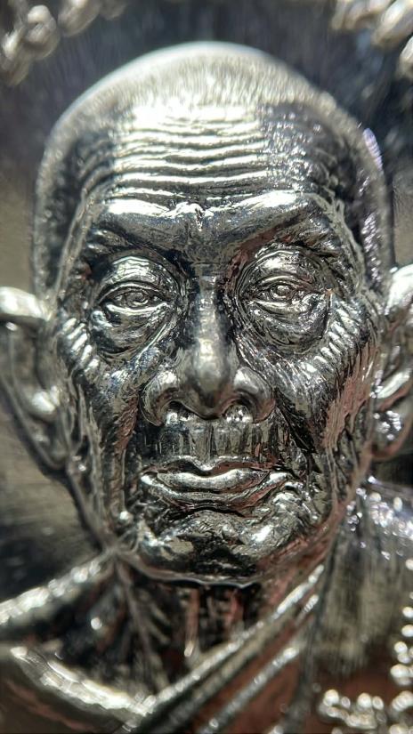 เหรียญรูปไข่ครึ่งองค์เนื้อเงินหลวงปู่สีวัดถ้ำเขาบุญนาครุ่นอรหันต์ 7 แผ่นดินปี2558 |