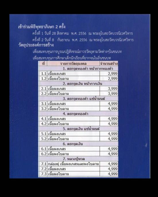 จัดสร้าง ณ วัดบวรนิเวศวิหาร ปลุกเสก 2 วาระ พิธียิ่งใหญ่แห่งปี เพื่อเฉลิมฉลองเจริญพระชันษา 100 ปี สมเด็จพระสังฆราช โดยถอดแบบมาจากพิมพ์จัมโบ 2 ของหลวงปู่โต๊ะ จำนวนการสร้างไม่มาก เพียง 4,999 องค์ เท่านั้น องค์นี้เป็น 1 ใน 4,999 องค์ เก็บตอนนี้ดีกว่าก่อนแพงไปกว่านี้ อีกหน่อยจะเป็นตำนานอีกรุ่นหนึ่งของสมเด็จพระสังฆราช |
