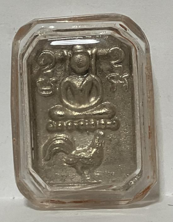เหรียญหล่อ พระพุทธประทับไก่ หลวงพ่อเชิญ วัดโคกทอง ปี34**(เนื้อเงิน)**พร้อมเลี่ยมกันผิว