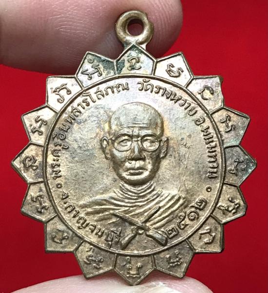 เหรียญ"ปืนไขว้" พระครูอินทสารโสภณ (หลวงพ่อเสริม) วัดรางหวาย จ.กาญจนบุรี ปี 2512 เนื้อทองแดงผิวไฟ |