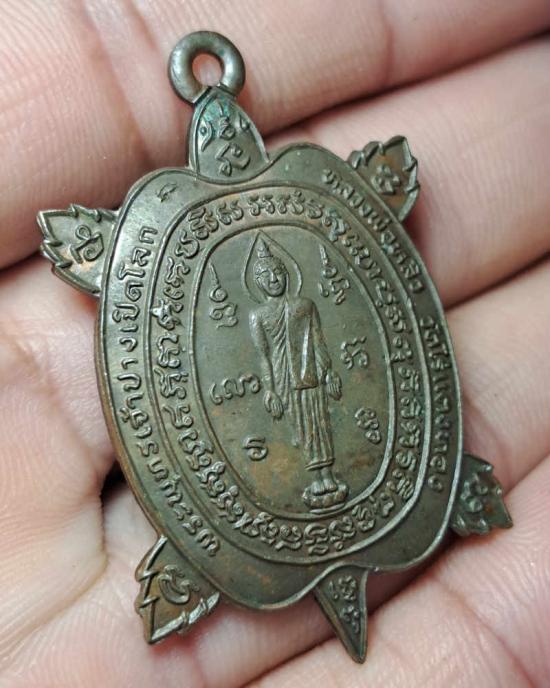 เหรียญพญาเต่าเรือนรุ่นปางเปิดโลกพิมพ์ใหญ่ หลวงปู่หลิว วัดไร่แตงทอง จังหวัดนครปฐม ปี 2539 เนื้อทองแดง |