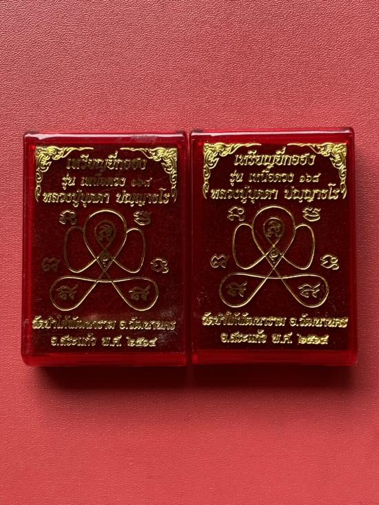 เคาะเดียวแดง หลวงปู่บุดดา ยี่กอฮง รุ่น เหนือดวง เนื้อ ทองแดงลงยาดำหน้ากากฝาบาตร (2องค์) |