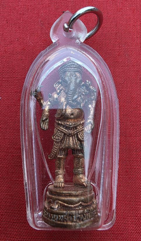 พระพิฆเนศ ปางเปิดจักรวาล เนื้อชนวน ตอกโค้ด "นะเมติ" รุ่นแซยิด 96 ปี พ.ศ. 2555 ของหลวงปู่หงษ์ พรหมปัญโญ สุสานทุ่งมน จังหวัดสุรินทร์. |