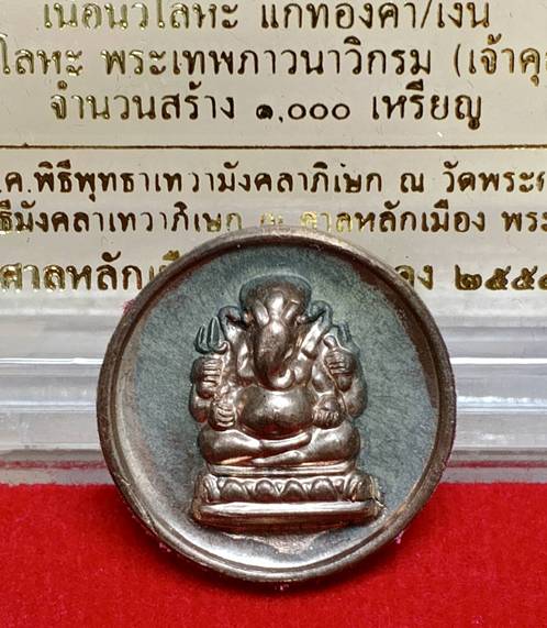 เหรียญพระพิฆเณศ 196 ปี หลักเมืองพระประแดง นวะโลหะแก่เงิน+แก่ทอง สร้าง 1000 เหรียญ |