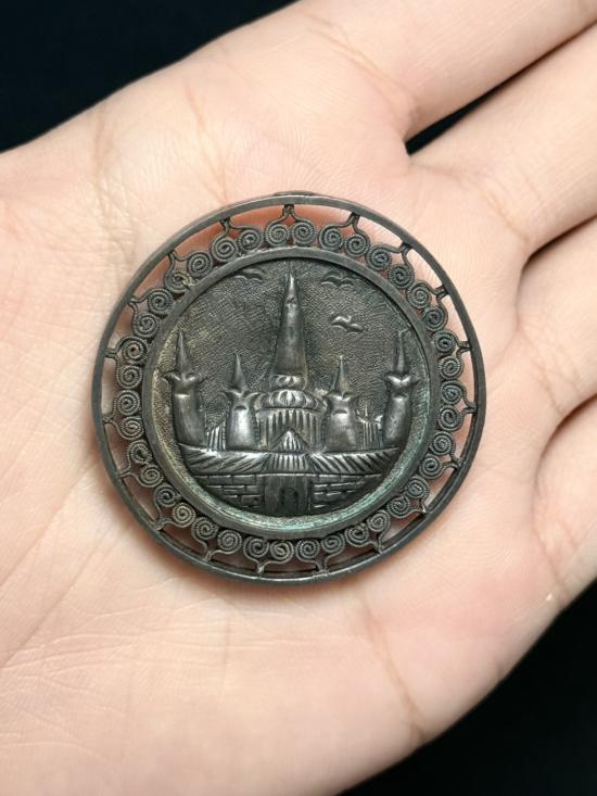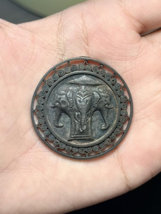 เหรียญฉลุโบราณงานฝีมือเก่ามากกกกก **เนื้อเงิน** ช้างสามเศียรหลังเจดีย์ เนื้อเงิน10กรัมกว่าๆ |