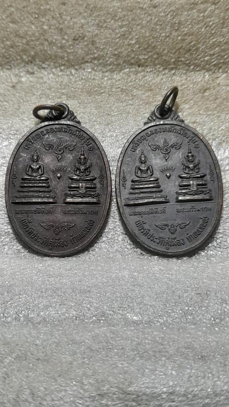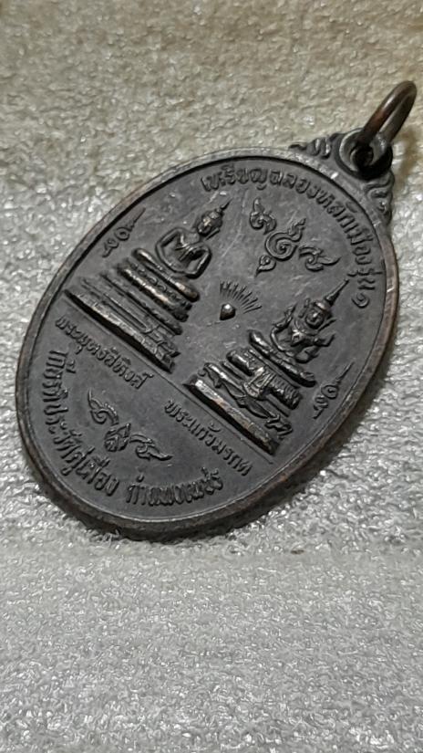 วัดใจเคาะเดียว......100.......เหรียญไตรภาคี ฉลองหลักเมือง รุ่น1 เจ้าพ่อหลักเมืองกำแพงเพชร ปี 2526 หลังพระซุ้มกอ + หลังกำแพงเม็ดขนุน รวม 2 เหรียญ |