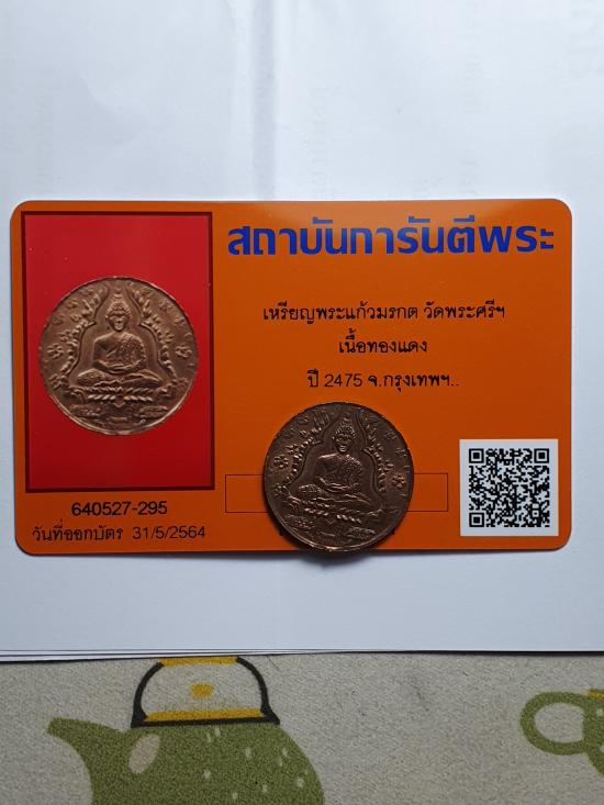 ****เหรียญพระแก้วมรกต วัดพระศรีฯ ปี 2475 เนื้อทองแดง พร้อมบัตรรับรอง
