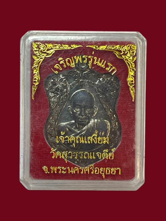 เหรียญเสมาเจริญพร ท่านเจ้าคุณเสงี่ยม วัดสุวรรณเจดีย์ จ.อยุธยา รุ่นแรก ปี ๒๕๕๕ |